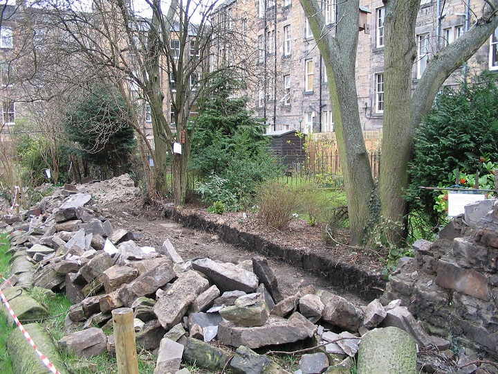 Collapsed East side of garden wall tidied up - 17th March 2006 |