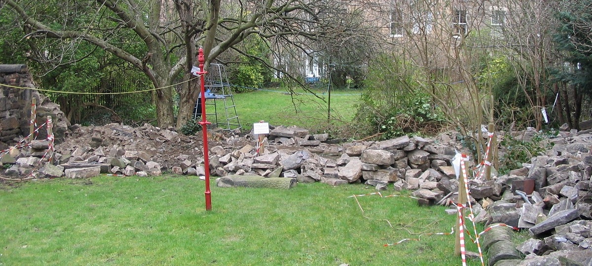 North end of garden wall dismantled to make safe - 17th March 2006 |
